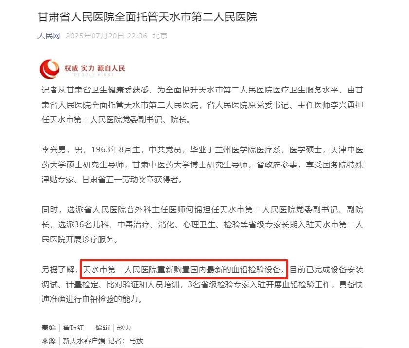 根據(jù)官方報道,昨日天水市第二人民醫(yī)院在省委省政府主導(dǎo)下完成實(shí)驗室體系全面整改,正式引進(jìn)博暉創(chuàng)新最新一代血鉛檢測設(shè)備。